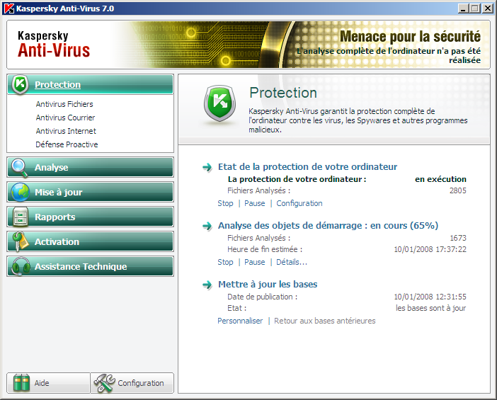 Télécharger Kaspersky Anti-Virus 7.0 MP1 (version 7.0.1.321) Français (26.2Mo)