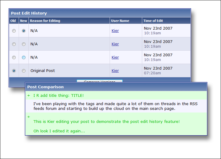 En fait seul les forums ont été mis à jour, en passant à la version 3.7.0 de vBulletin. Voici donc la liste des nouveautés... Balisage des sujets Afin de faciliter les recherches et le regroupement de sujets similaires, les balises (ou "tags" en anglais) ont été implémentées. Vous pouvez les ajouter/modifier/supprimer à tous les sujets, nouveaux comme anciens. Préfixes de sujets LeMoi va être content, les préfixes sont maintenant disponibles dans une bonne partie des forums (sauf ceux des news, articles, etc.). Les suggestions de préfixes sont les bienvenues. Révision du concept d'amitié Votre liste d'amis est maintenant une liste de contacts. Pour avoir des amis, l'amitié doit être réciproque. Messagerie publique Comme la messagerie privée, mais publique :) Albums photos Vous pouvez maintenant créer des albums et y placer des photos. Ces albums peuvent être publics ou privés, et les membres peuvent y laisser des commentaires. Groupes sociaux Afin d'avoir une cohésion enter les membres et d'encourager les échanges, vous pouvez dorénavant créer vos propres groupes sociaux. Chaque groupe peut avoir son propre système de messagerie publique, et vous opuvez y ajouter des images depuis vos albums. Nouvelle page de profil La pierre angulaire de toutes ces nouveautés "sociales" ! Personnalisation de la page de profil Vous pouvez personnaliser (dans une certaine mesure, NDFR n'est pas MySpace :p) votre page profil. Modification rapide des champs du profil Vous n'aurez plus d'excuse pour ne pas avoir un profil à jour ;) Signets sociaux Comme pour les news, articles et autres, vous pouvez maintenant ajouter vos sujets favoris à vos sites de bookmarking préférés. Visualisation rapide des pièces jointes Les images en pièces jointes apparaîssent maintenant dans une "lightbox". Vérification humaine améliorée NDFR utilise désormais reCAPTCHA pour vérifier que les nouveaux inscrits et les personnes utilisant le formulaire de contact ne sont pas des bots. Historique des messages Un historique de toutes les éditions de messages est maintenant conservé. Outils de gestion et de prévention du spam Les modérateurs ont désormais la possibilité de marquer des sujets/messages comme étant du spam. Le système est basé sur Akismet. Identification avancée de la modération intégrée Destinée aux modérateurs se servant d'ordinateurs publics, cette fonction permet à ceux-ci de s'identifier à nouveau lors de manipulations importantes. Et plus encore... Mais je vous laisse découvrir tout ça par vous-mêmes ! NB : certaines pages ne sont pas encore complètement traduites, elles le seront au cours des semaines à venir. |