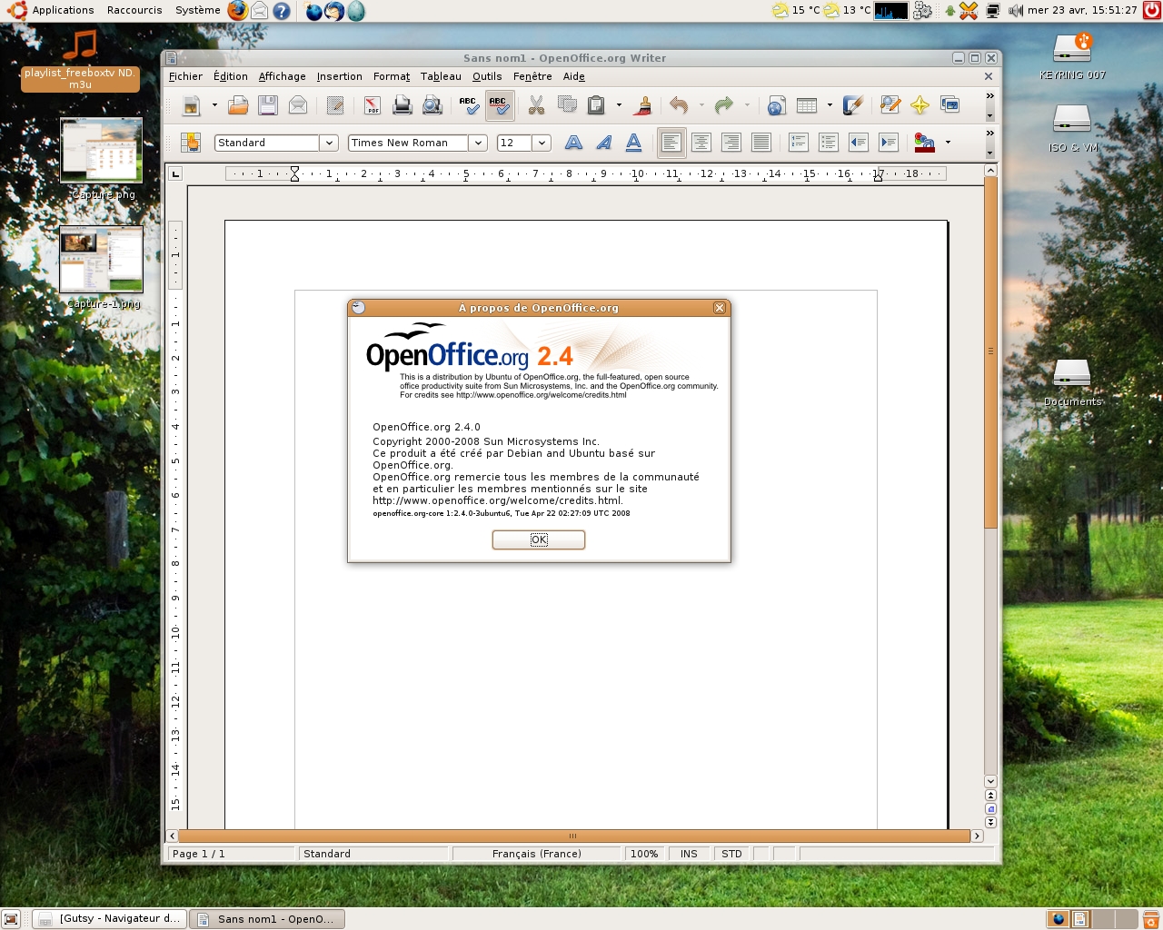 Nous voilà donc le 24 Avril 2008, date à laquelle le Ubuntu nouveau sort des caves après une longue fermentation en plusieurs bêta et une release candidate et frappée d'une zolie étiquette Canonical. Oui, oui, vous me lisez bien, voici enfin Ubuntu Hardy Heron (Héron Robuste en français - donc rien à voir avec Laurel et Hardy :D ) 8.04 LTS le successeur de Gutsy Gibbon (7.10) ! Alors, on ne présente plus Ubuntu, il commence à se faire tout doucement connaître du grand public, mais on va tout de même faire une petite révision. Ubuntu est donc un système d'exploitation (comme Windows) officiellement né en Octobre 2004 sous la version 4.10 Warty Warthog basé sur Debian Sid (SID = Still In Developpment - la branche instable de Debian) ce qui est toujours le cas actuellement, les logiciels sont rapatriés de cette branche et sont ensuite stabilisés, ensuite la version finale arrive enfin ! Une version finalisée d'Ubuntu arrive tous les 6 mois. Quelques fois, une version d'Ubuntu sort dans une version avec un support allongé dit LTS de 3 ans pour les PC de bureau et de 5 ans pour les serveurs. Hardy Heron est ainsi la 2ème distribution à être baptisée LTS après Ubuntu Dapper Drake (6.06 LTS) Dans le commerce, comme le monopole de Windows a été sévèrement reproché à la firme de Redmond, il a fallu qu'une réelle alternative se mette en place et c'est depuis ce jour que Ubuntu est parfois proposé directement installé sur les nouveaux PC. Certes ils ne sont pas nombreux, mais proposés (parfois à des tarifs similaire aux PC Windows pour une unité centrale de même caractéristique). Windows Vista étant maintenant bien implanté dans ce secteur, les personnes voulant un PC avec un OS pas trop gourmand en ressources se sont donc tournées vers cette alternative, voire vers MacOS X, mais là n'est pas la question. Revenons à Ubuntu Hardy. Cette nouvelle version arrive à point nommé car elle introduit pas mal de nouveautés par rapport aux anciennes versions. On pourra noter la disponibilité de Wubi intégré sur le LiveCD ou le DVD qui permet aux utilisateurs méfiant envers Linux de pouvoir tester celui-ci sans toucher aux partitions Windows. L'exploit (si on peut le dire) est que Wubi installe Ubuntu dans un fichier Image sur une partition Windows, règle automatiquement le double-boot et voilà, Ubuntu s'installe comme s'il était sur une partition dédiée et pourra être testé ensuite. Une fois le test fini, un tour dans le module d'ajout/suppression de programmes de Windows suffit pour le désinstaller. Pour les nouveautés introduites dans Ubuntu Hardy Heron, on pourra citer : Nouveautés Ubuntu est disponible en 3 environnements de bureau : Gnome, KDE et XFCE, sans compter que chaque distribution est déclinée en deux méthodes d'installation : l'Alternate est une installation en mode texte et la version Desktop est une installation démarrée via le système de LiveCD (qui permet de démarrer la distribution sans rien installer, parfait pour un test avant installation). le DVD contient les 2 méthodes d'installations proposées par les CDs.- GNOME 2.22.1 ou KDE 3.5.9 ou 4.0.3 (j'expliquerai ça plus tard) - Kernel 2.6.24 - PolicyKit - PulseAudio - Xorg 7.3 - Firefox 3.0 bêta 5 (la version finale sera proposée plus tard et sûrement intégrée dans Ubuntu 8.04.1) - OpenOffice 2.4 - Pidgin 2.4.1 - Brasero (logiciel de gravure) - Transmission (remplaçant de l'ancien client dont je ne me rappelle plus le nom) - Horloge mondiale (pour savoir qui fait dodo ou pas) - Vinagre (client VNC) - Uncomplicated Firewall - Intégration du support d’Active Directory - Support de l’iSCSI - Protection de la mémoire - Support de SELinux Voici enfin les liens de téléchargement ! [download] Télécharger Ubuntu Hardy Heron 8.04 LTS (lien officiel) [download] Ubuntu Hardy Heron 8.04 LTS : Desktop (32 bits, 64 bits), Alternate (32 bits, 64 bits), Server (32 bits, 64 bits), DVD (32 bits, 64 bits) [download] Kubuntu-KDE3 Hardy Heron 8.04 LTS CDs [download] Kubuntu-KDE4 Hardy Heron 8.04 CDs [download] Xubuntu Hardy Heron 8.04 LTS CDs (XFCE) [download] Edubuntu Hardy Heron 8.04 LTS CDs (Gnome version éducation) Captures d'écran : Attachment 755 Attachment 756 Attachment 757 Attachment 758Attachment 759 Attachment 760 http://www.n1fo.fr/ndfr.gifPas d'évolution majeure de l'interface d'Ubuntu Hardy Heron |