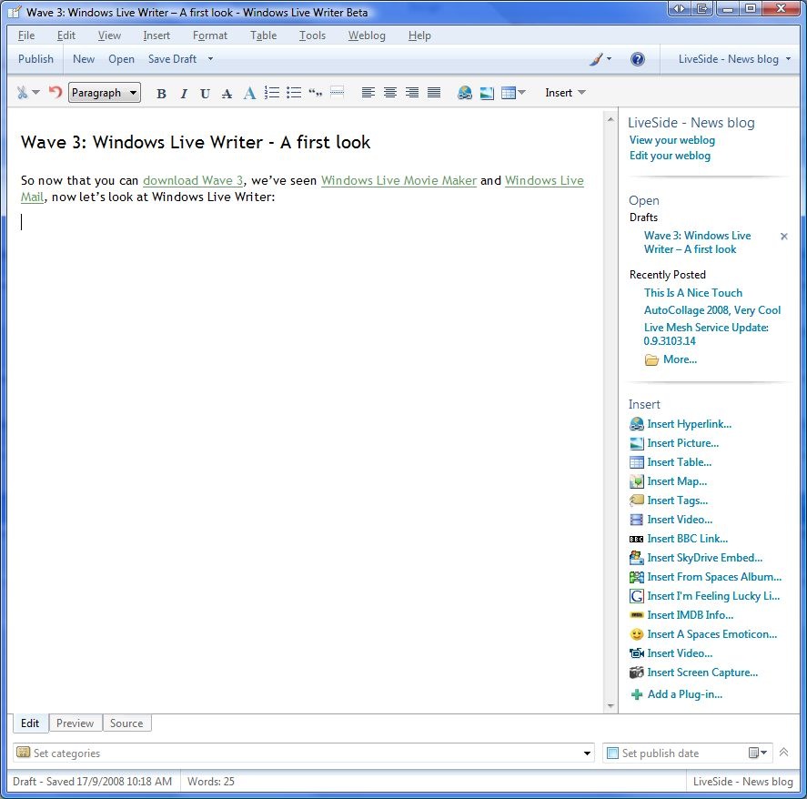 Microsoft vient de publier une nouvelle version bêta de ses logiciels phare de gestion de... tout. Amis, Photos, Courrier électronique, Blog, Films persos et Contrôle parental viennent se retrouver dans cette nouvelle version, celle qui précède la version finale qui sortira début février 2009 (aux alentours du 10).