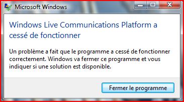 WLM 2009 : Windows Live Communications Platform a cessé de fonctionner