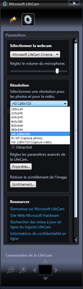 Packaging La LifeCam Cinema est livrée dans une boîte aux couleurs de Microsoft Hardware avec, comme d'habitude, une fenêtre en plastique translucide permettant de voir la caméra. Une fois de plus, on regrettera le côté peu réutilisable de ce genre d'emballage... À l'intérieur, on trouve bien entendu la webcam, le CD de drivers, le manuel et le guide d'installation rapide. La LifeCam Cinema La LifeCam Cinema est une webcam de relativement grande taille, qui prend la forme d'un tube métallique de 55mm de long et 26mm de diamètre. Un design qui rappelle l'iSight d'Apple. Elle est livrée avec un support articulé recouvert de caoutchouc, qui peut servir soit de pied pour poser la webcam sur un écran CRT ou un bureau, soit de crochet pour suspendre la webcam à un écran plat. Sur le dessus, on trouve un bouton permettant de lancer une conversation vidéo et un micro, caché derrière une grille métallique. En face avant, on trouve bien entendu l'objectif, protégé par une petite vitre, et une LED de couleur bleue indiquant le fonctionnement de la webcam. Au niveau du capteur, on remarque le positionnement haut de gamme de la LifeCam Cinema : exit l'habituel capteur 4/3 en 640x480, qui cède ici sa place a un capteur HD 16/9 en 1280x720. Installation L'installation de la webcam ne pose pas de souci particulier. Il suffit d'installer le logiciel présent sur le CD puis de brancher la webcam. L'installation est même encore plus simple sous Windows 7, où le pilote et le logiciel seront automatiquement téléchargés via Windows Update. Utilisation La LifeCam Cinema est livrée avec le logiciel LifeCam 3.0, inclus avec toutes les webcams de la marque. Il offre une vaste gamme de réglages, allant de la résolution (du 160x120 au 1280x720 pour la vidéo, et jusqu'à 2880x1620 pour la photo, même si cette dernière résolution présente très peu d'intérêt puisqu'il s'agit d'une interpolation) à la mise au point, en passant par les réglages d'image (luminosité, contraste...). Ces différents réglages peuvent également être pris en charge de façon automatique. Lorsque la capture est faite dans une résolution inférieure au 1280x720, le logiciel permet également de zoomer et de décaler l'image de gauche à droite et de haut en bas. Bizarrement, il n'y a par contre pas de fonction de suivi de visage. À partir du logiciel, il est possible de lancer une capture vidéo, une capture photo ou une capture audio. Les photos sont enregistrées en JPEG, tandis que les vidéos et les sons sont enregistrés dans les formats de WMV et WMA de Microsoft. Qualité d'image Nous avons comparé la qualité d'image produite par la LifeCam Cinema à celle de la LifeCam VX3000 dans différentes situations, en mode automatique, sauf pour le choix intérieur/extérieur sur la VX3000. Attachment 1019 Attachment 1020 Le matin, en intérieur : à gauche, la LifeCam Cinema ; à droite, la LifeCam VX3000 En intérieur le matin dans une pièce orientée plein est : l'image de la Cinema est alors très bonne, correctement exposée, nette et peu bruitée. La VX3000 s'en sort beaucoup moins bien. Le mode extérieur a dû être activé pour ne pas avoir une image totalement blanche, mais l'image reste malgré tout trop claire et bruitée dans les zones sombres. Attachment 1021 Attachment 1022 La journée, en intérieur : à gauche, la LifeCam Cinema ; à droite, la LifeCam VX3000 Au même endroit, en pleine journée : l'image de la Cinema est toujours excellente, quasiment identique à ce qui était obtenu le matin, malgré la luminosité bien moindre. La VX3000 (mode intérieur) donne pour sa part une image un peu moins blanche, mais toujours un peu pâlotte. Attachment 1023 Attachment 1024 Le soir, en intérieur (lumière éteinte) : à gauche, la LifeCam Cinema ; à droite, la LifeCam VX3000 Toujours au même endroit, au crépuscule, lumière éteinte : l'image de la Cinema devient nettement plus sombre et bruitée, mais reste exploitable. La VX3000 est ici totalement larguée, l'image est quasi uniformément noir à deux ou trois reflets près. Attachment 1025 Attachment 1026 En extérieur : à gauche, la LifeCam Cinema ; à droite, la LifeCam VX3000 Enfin, en extérieur, pendant une journée nuageuse mais lumineuse : ici, la Cinema atteint ses limites. L'image est correctement exposée, mais manque de précision, les détails sont trop lissés, et on constante un flou accentué sur les bords de l'image. La VX3000 est également à la peine. Malgré l'activation du mode extérieur, l'image est surexposée et manque de précision. Attachment 1027 Attachment 1028 En extérieur : à gauche, l'iPhone 3G ; à droite, le Panasonic Lumix FZ-28 Pour la comparaison en extérieur, nous avons également utilisé un iPhone 3G et un bridge Panasonic Lumix FZ-28. Tous deux s'en sortent sans surprise bien mieux, puisqu'ils sont prévus pour de tels usages. La comparaison avec le Lumix permet par contre de faire une approximation de la focale de la LifeCam Cinema. En effet, on constate qu'elle offre un angle de prise de vue un peu plus ouvert que celui de la photo prise avec le Lumix, qui était réglé sur une focale équivalente à un 30mm en 24x36. On peut donc estimer que la LifeCam Cinema dispose d'une focale équivalente à un 28 ou 29mm. C'est donc un vrai grand angle, contrairement à la VX3000, ce qui peut s'avérer très pratique en intérieur. Conclusion Positionnée sur le segment haut de gamme, la LifeCam Cinema justifie sans peine son tarif de 80€. La qualité d'image est bonne, voir excellente, l'autofocus fait bien son travail, les intérieurs sombres ne lui font pas peur et la résolution de 1280x720 est ce qui se fait de mieux en matière de webcam. Reste à voir l'utilité réelle d'une tel webcam. Pour un usage purement orienté vidéo conférence via Internet, la LifeCam Cinema est en effet largement surdimensionnée et l'investissement ne se justifiera que pour les quelques privilégiés di