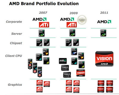 Ce changement de nom vise principalement à renforcer la marque AMD par l'oubli de la marque ATI sans oublier le fort attachement aux marque Radeon (grand public) et FirePro (professionnel) mais aussi permettra à AMD de proposer sous une seule et même marquer un nouveau modèle de puces ( APU) intégrant à la fois un CPU (processeur de l'ordinateur) et un GPU ( processeur graphique ), ces puces porteraient le nom de Fusion. Pour le moment, aucune date exacte pour la disparition définitive de la marque ATI mais cela devrait se faire très progressivement. |