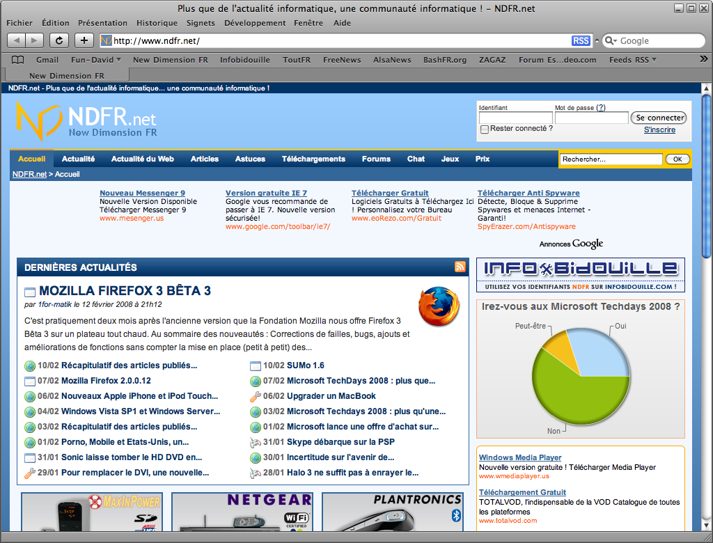 Des problèmes ? Le chat NDFR est disponible. Des problèmes pour y accéder ? Voici le tuto. Le Best Of "QUOTES" du chan IRC: C'est par ici Sur n'1fo[r-matik] : Astuce : Activer le bloqueur de pub/tracking natif sur Firefox