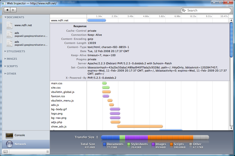 On pourra remarquer parmi les nouveautés de ces bêta que le logiciel est enfin localisé (Français compris) et intègre maintenant un Web Inspector (équivalent de l'extension Firebug pour Firefox), sans compter l'énorme flopée de corrections de bugs et améliorations diverses ![]() Après quelques tests (réalisés pas mes petites mains), le logiciel est plus stable que les précédentes bêtas ![]()