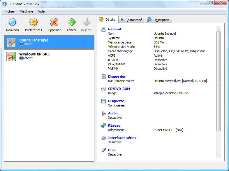 Pour les autres corrections, voici le changelog : Changelog This is a maintenance release. The following items were fixed and/or added: * VMM: better error reporting for VT-x failures * VMM: don’t overflow the release log with PATM messages (bug #1775) * VMM: fixed save state restore in real mode (software virtualization only) * GUI: work around a Qt bug on Mac OS X (bug #2321) * GUI: properly install the Qt4 accessible plugin (bug #629) * SATA: error message when starting a VM with a VMDK connected to a SATA port (bug #2182) * SATA: fixed Guru mediation when booting OpenSolaris/64; most likely applies to other guests as well (bug #2292) * Network: don’t crash when changing the adapter link state if no host driver is attached (bug #2333) * VHD: fixed bug which prevents booting from VHD images bigger than 4GB (bug #2085) * VRDP: fixed a repaint problem when the guest resolution was not equal to the client resolution * Clipboard: don’t crash when host service initialization takes longer than expected (Linux hosts only; bug #2001) * Windows hosts: VBoxSVC.exe crash (bug #2212) * Windows hosts: VBoxSVC.exe memory leak due to a Windows WMI memory leak (Vista only) (bug #2242) * Windows hosts: VBoxSVC.exe delays GUI startup * Linux hosts: handle jiffies counter overflow (VM stuck after 300 seconds of host uptime; bug #2247) * Solaris hosts: fixed host or guest side networking going stale while using host interface networking (bug #2474) * Solaris hosts: added support for using unplumbed network interfaces and Crossbow Virtual Network Interfaces (VNICs) with host interface networking * Solaris hosts: reworked threading model improves performance for host interface networking * Windows additions: fixed crash when accessing deep directory structures in a shared folder * Windows additions: improved shared folder name resolving (bug #172 ![]() * Windows additions: fixed Windows 2000 shutdown crash (bug #2254) * Windows additions: fixed error code for MoveFile() if the target exists (bug #2350) * Linux additions: fixed seek() for files bigger than 2GB (bug #2379) * Linux additions: support Ubuntu 8.10 * Linux additions: clipboard fixes (bug #2015) * Web services: improved documentation and fixed example (bug #1642) Télécharger Sun xVM Virtualbox 2.0.4 pour toutes les plateformes